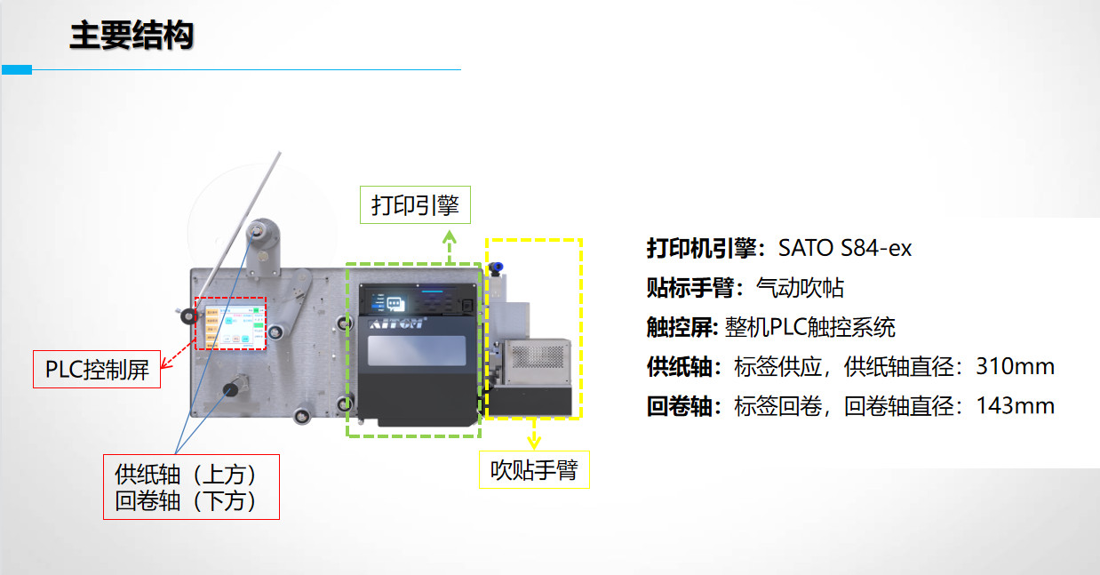 - 硬件:打印模塊 打印引擎、剝離回卷器。