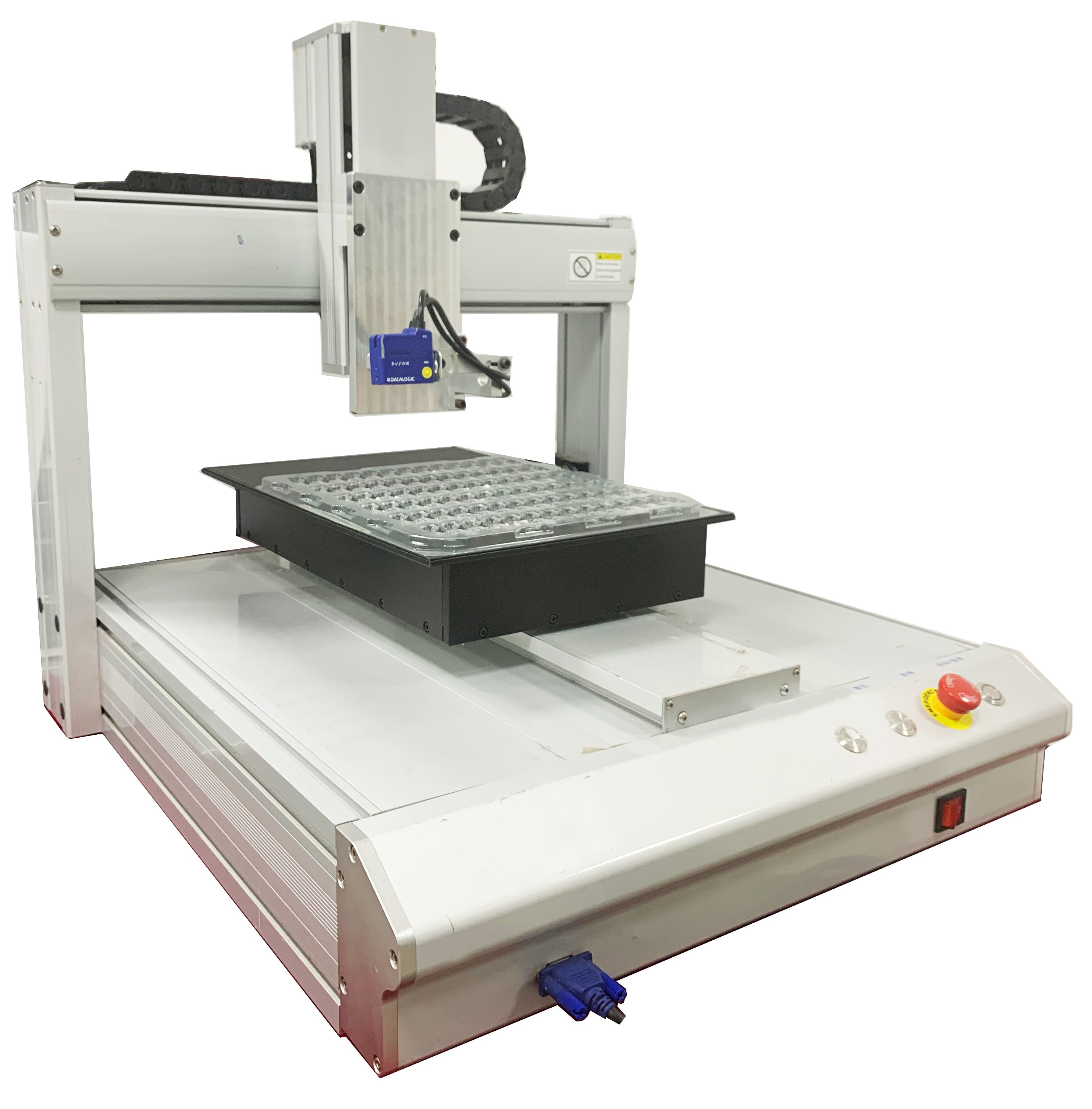 - 10、采用進(jìn)口光電傳感器進(jìn)行XYZ三維坐標(biāo)自動(dòng)教導(dǎo),保證在更換不同型號(hào)掃碼器時(shí)時(shí)保證基準(zhǔn)點(diǎn)的準(zhǔn)確性。