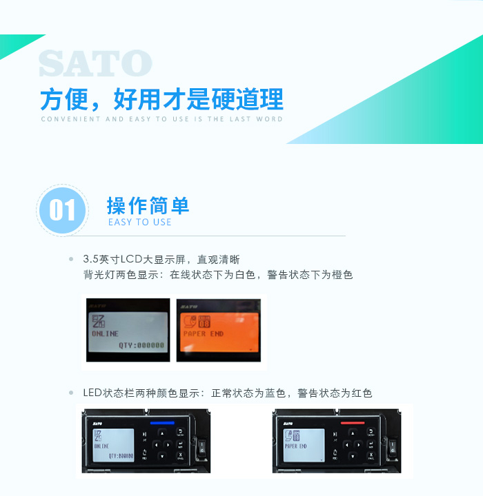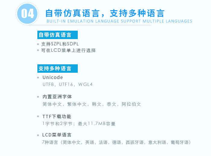 新一代打印引擎含有雙色LCD和LED顯示器,方便作業(yè)者即便遠(yuǎn)離打印設(shè)備也能輕松獲知打印狀態(tài)。只通過LCD屏控制就可進(jìn)行獨(dú)立打印操作。無需軟件工具,客戶可通過SD卡/U盤,下載/上傳字體、打印設(shè)置;可通過網(wǎng)頁瀏覽器遠(yuǎn)程設(shè)置打印機(jī)。